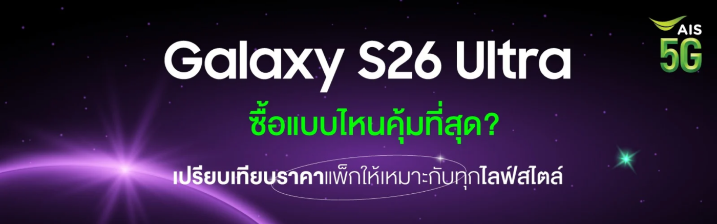 📌 “Samsung Galaxy S26 Ultra ราคาเท่าไหร่” และ “ซื้อแบบไหนคุ้มที่สุด” หลายคนลังเลว่าควรซื้อเครื่องเปล่าดีไหม หรือเลือกแบบติดโปร AIS ดีกว่า คำตอบขึ้นอยู่กับงบประมาณและรูปแบบการใช้งาน ในบทความนี้ เราสรุปมาให้ครบทั้ง แบบที่